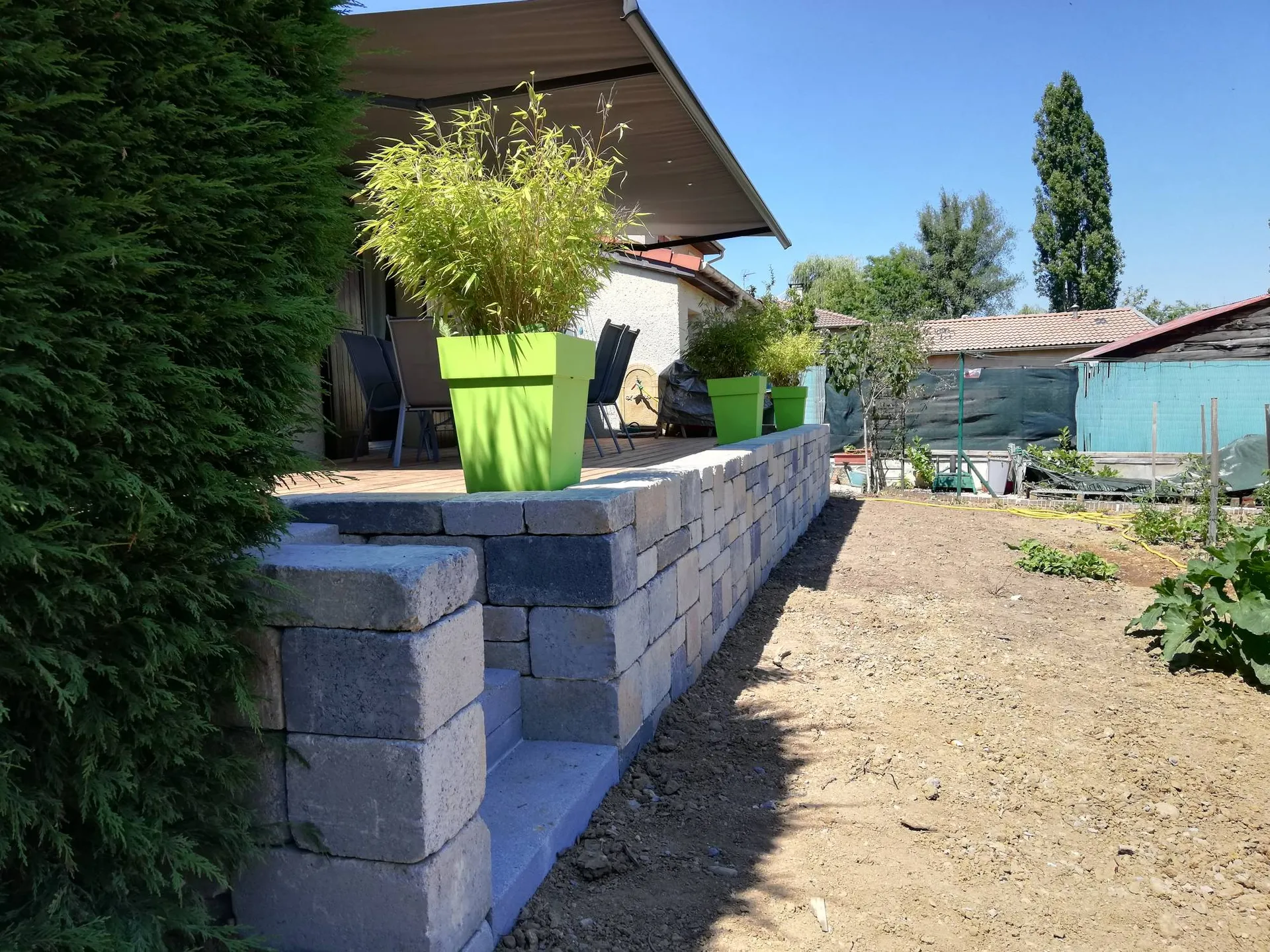 Faites comme notre client . Pour ce projet notre clients souhaitait agrandir sa terrasse et créer un muret de soutien.